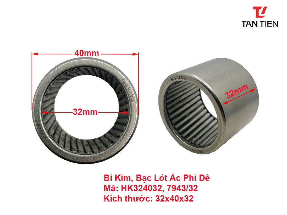 Bạc Đạn Đũa, Bi Kim HK324032, 7943/32, 00290-94332, 12K2014-14 có kích thước 32x40x32mm là bạc ắc phi dê dùng trên xe nâng Heli 2-3 tấn và một vài hãng xe nâng Trung Quốc khác dòng CPCD20/25/30