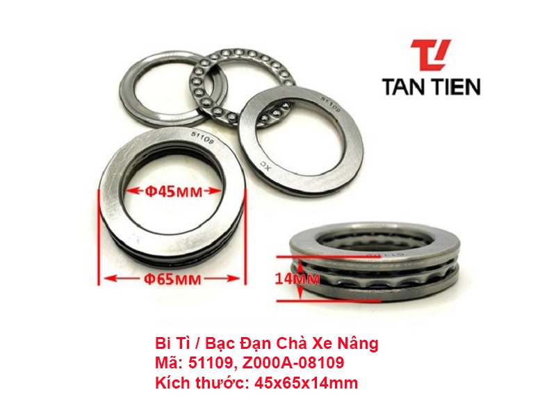 Vòng Bi 51109, Z000A-08109, 8109 là bạc đạn chà trong hệ thống bi lái xe nâng HELI 4-5 tấn dòng H series và một vài hãng xe nâng khác như EP, JAC, Lonking,...
