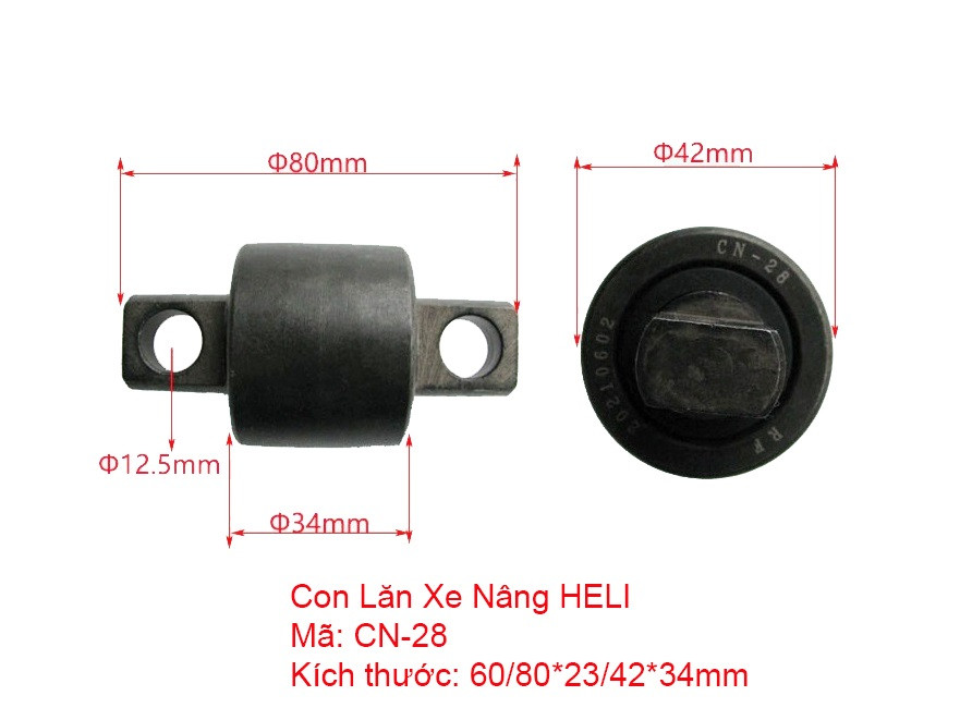 Con Lăn Xe Nâng HELI CN-28 có kích thước 80x42x34mm là con lăn ngang khung càng xe nâng HELI 3-3.5 tấn dòng K Series và H2000 Series CPC(D)30/35-XC5K