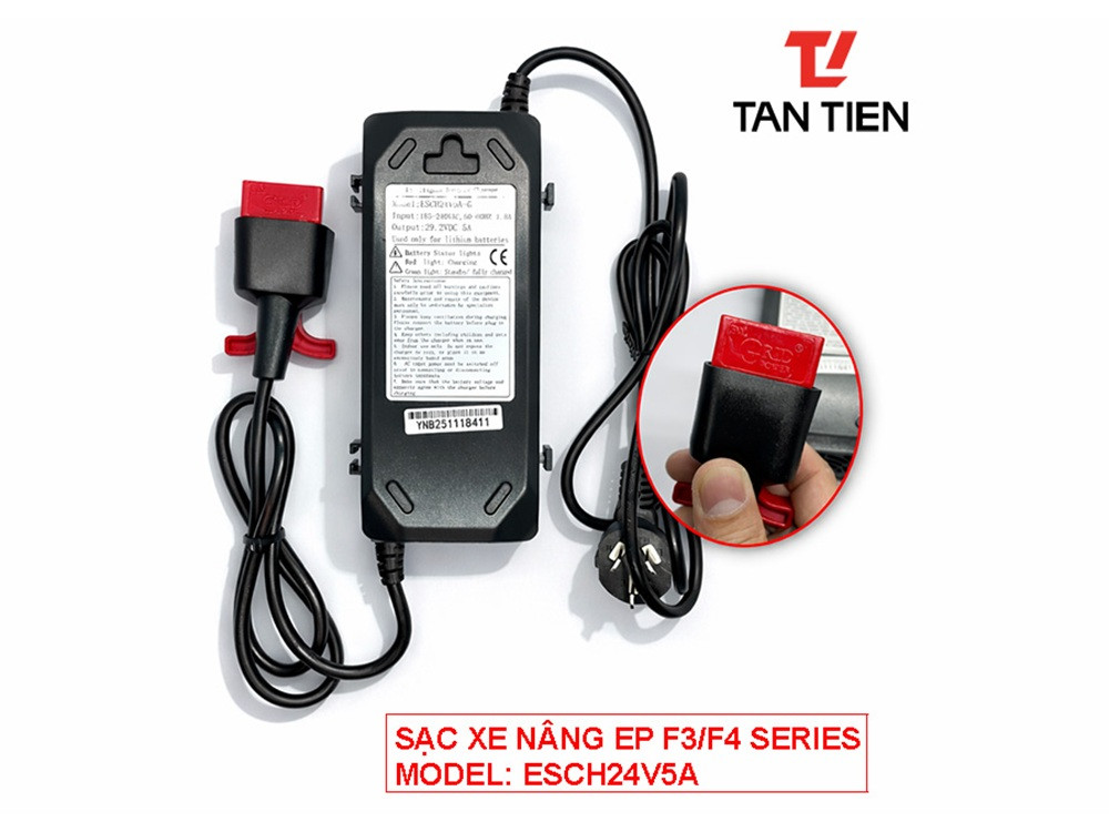 Sạc Xe Nâng EP ESCH24V5A-G là bộ sạc thông minh được thiết kế chuyên dụng trên xe nâng tay EP F3/F4 ( sử dụng pin lithium 24V20Ah
