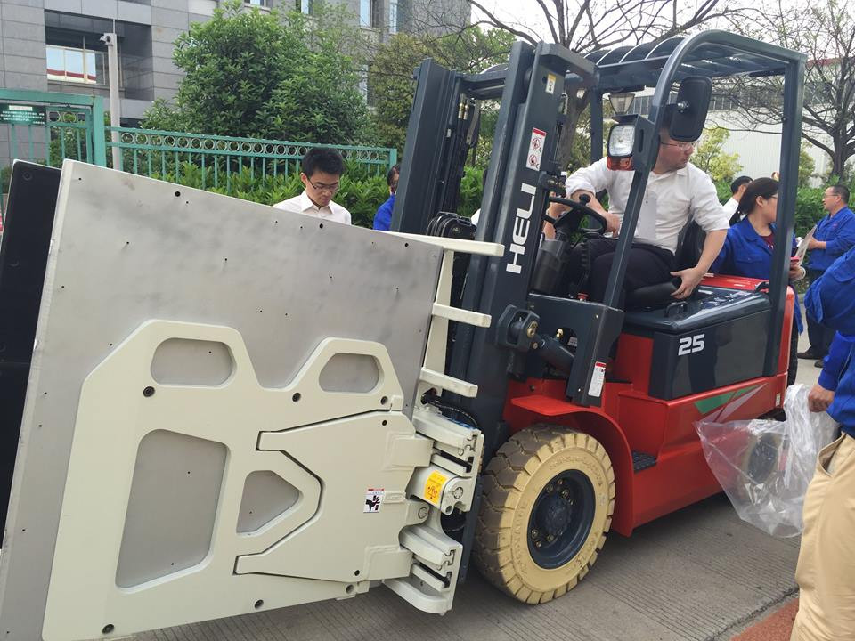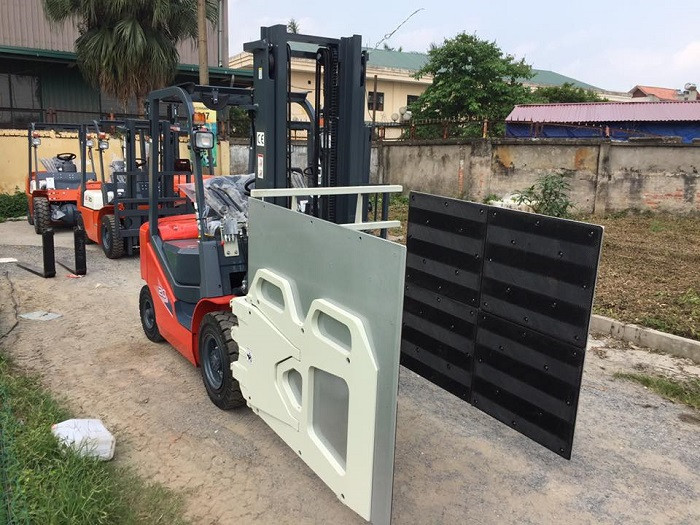 Xe kẹp thùng carton là dòng sản phẩm xe nâng chuyên dụng của heli lắp thêm bộ công tác kẹp thùng carton clamp.