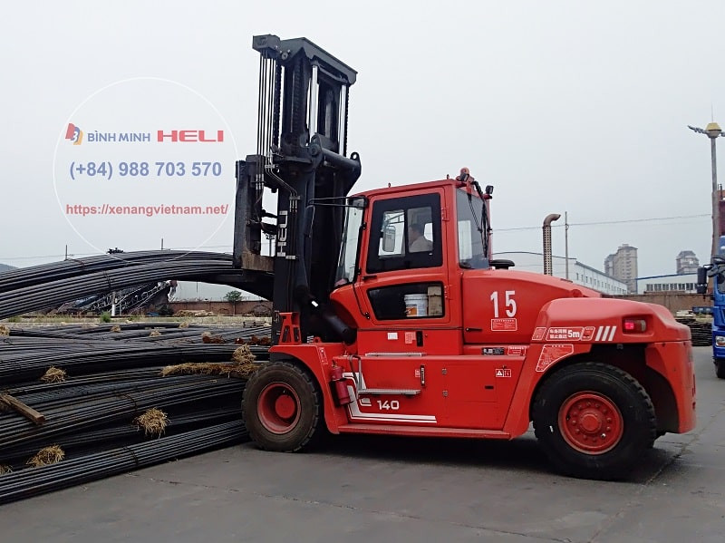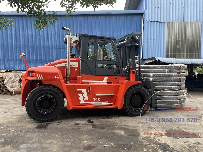 Xe nâng 14 tấn chạy dầu của Heli có model CPCD140 là dòng sản phẩm xe nâng hạng nặng thuộc phân khúc tải trọng từ 14-18 tấn. Đây là phân khúc sản phẩm thường được sử dụng trong các ngành công nghiệp sản xuất bê tông dạng ống cống, cấu kiện kim loại, các nguyên vật liệu xây dựng hay công việc tại các cảng biển lớn,....