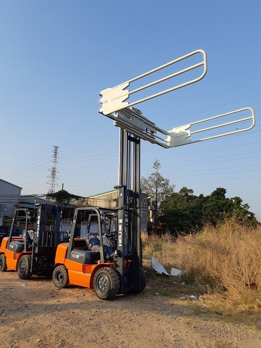 Trong đó dòng xe nâng hàng 3 tấn chạy dầu diesel là dòng sản phẩm phổ biến và thích hợp để lắp bộ kẹp khối phục vụ cho công việc kẹp và nâng hạ các kiện hàng bông, nhựa, phế liệu,...