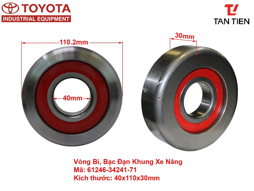 Vòng Bi 40x110x30 mm là bạc đạn rãnh chuyên dụng trên xe nâng toyota 1.5-1.8 tấn dòng 8FDN15-18, 8FD15-18 mã phụ tùng 61246-34241-71