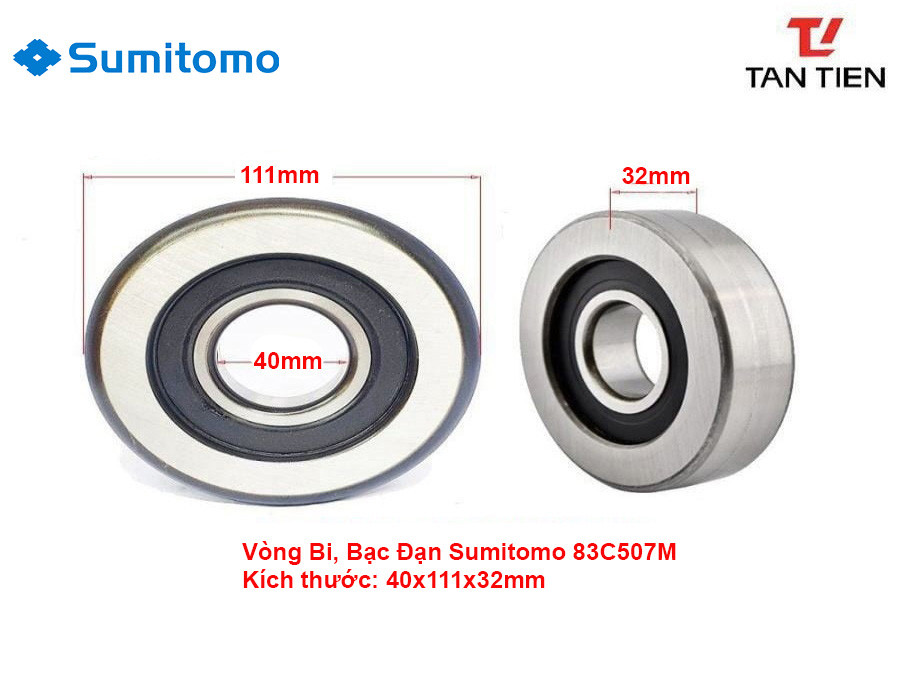 Vòng Bi 83C507M, MG 308 FFU có kích thước 40x111x32mm là bạc đạn khung càng xe nâng Sumitomo 3 tấn