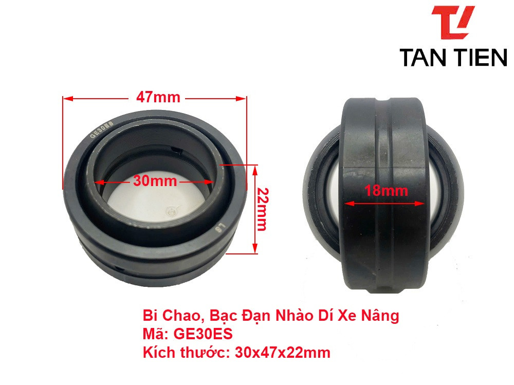 Vòng Bi GE30ES kích thước 30x47x22mm hay còn gọi là bạc đạn nhào dí, bi chao chuyên dùng trên hệ thống lái xe nâng 8-10 tấn của Trung Quốc như HELI, Hangcha, Lonking, TEU, MGA,..