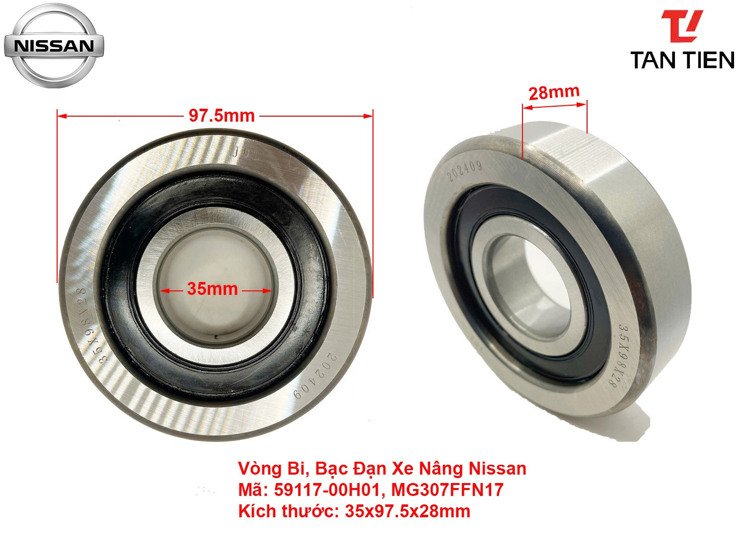 Vòng Bi Nissan 59117-00H01, MG307FFN17 Kích thước 35x97.5x28mm là Bạc đạn khung xe nâng Nissan và nichiyu 1-1.8 tấn dòng FB10-18/ 70-75 FRB15-75, FBT10-15