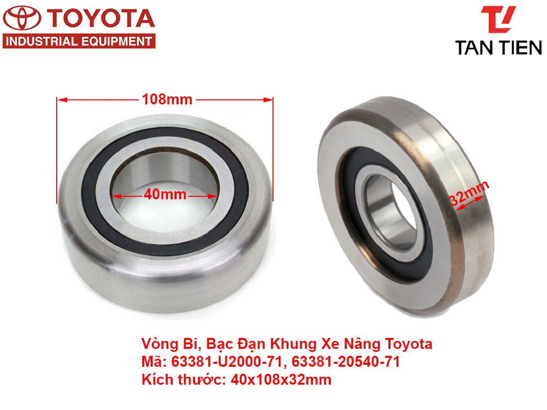 Vòng Bi Toyota 63381-U2000-71, 63381-20540-71, DAC401080032/17, MG308FFQA kích thước 40x108x32mm Là bạc đạn khung càng xe nâng Toyota FDU20 02-5FDU25 42-5FGU20 42-5FGU25 02-5FDU30
