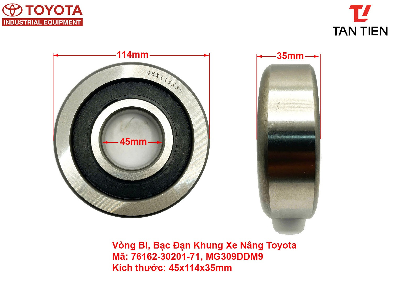 Vòng Bi toyota 76162-30201-71, MG309DDM9 có kích thước 45x114x35mm là bạc đạn khung xe nâng chuyên dụng trên xe nâng Toyota 2.5 tấn dòng 2FD35, 2FD40